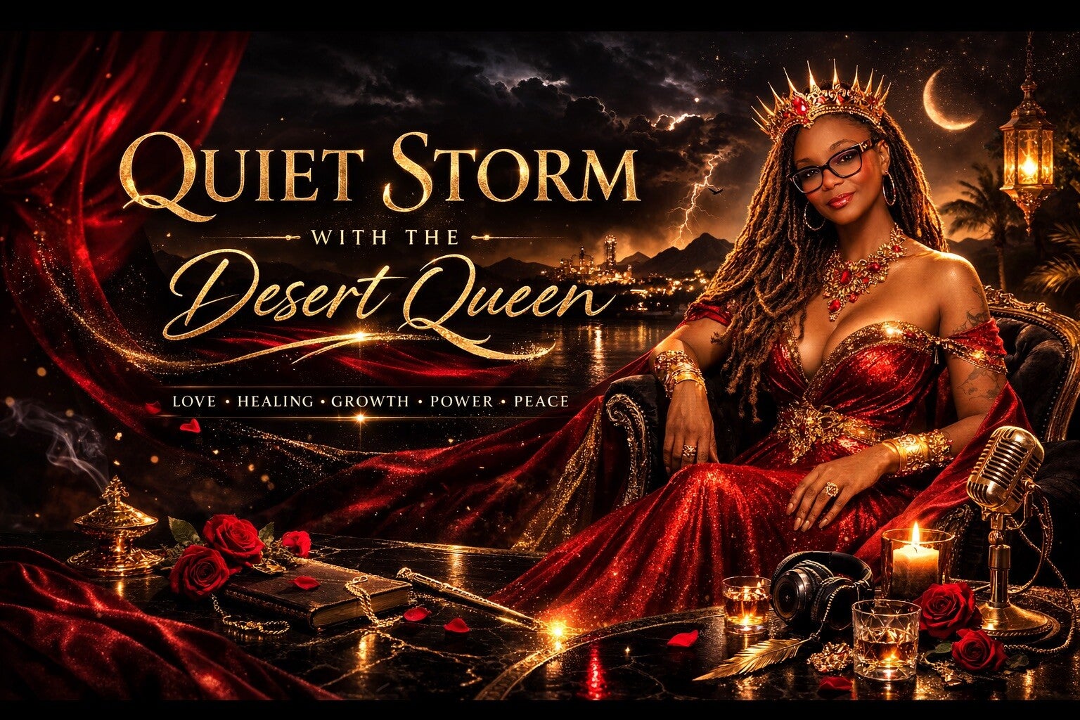 Desert Queen: Quiet Storm is a space created for reflection, healing, storytelling, and truth. Here, the noise fades and real conversations begin. Through intimate storytelling, spoken reflections, and emotionally rich moments, Quiet Storm invites listeners into a world where vulnerability becomes strength and silence speaks louder than words.