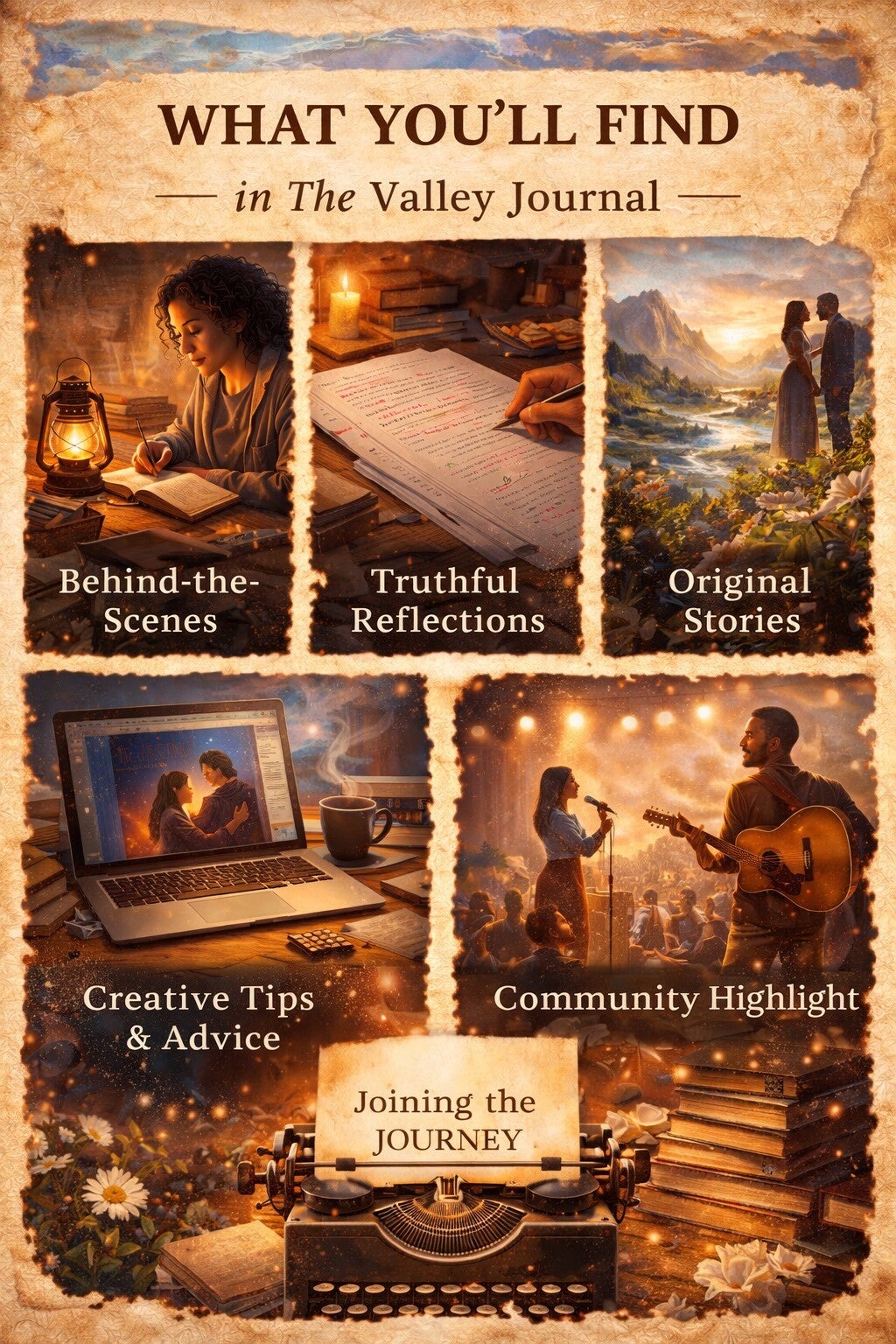 Expect behind-the-scenes storytelling, author journeys and personal reflections, original short stories and excerpts, creative and publishing education, artist and author spotlights, explorations of culture and emotion, and real, honest conversations. The Valley Journal dives deep into the heart of creativity.